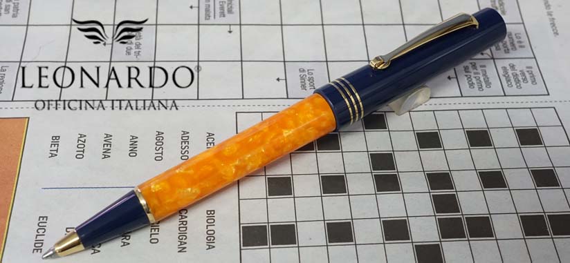 送料・名入れ料金は別途費用を要する場合がございます。 詳しくはアイコンをクリックしてご確認ください。 「トラモント」(Tramonto)とはイタリア語で「日の入り」を意味します。レオナルド オフィチーナ イタリアーナの故郷は、南イタリア・ナポリ近郊の小都市カゼルタ。昼間は陽光あふれるこの町も、小高い丘の向こうに日が沈むと夜の風景に変わり、また違った表情を見せます。そんな二つの顔をオレンジとネイビーのレジン(樹脂素材)で表現しました。反対色の組み合わせながら、ニュアンスのあるオレンジのボディと、ソリッドなネイビーのキャップとのバランスが絶妙です。