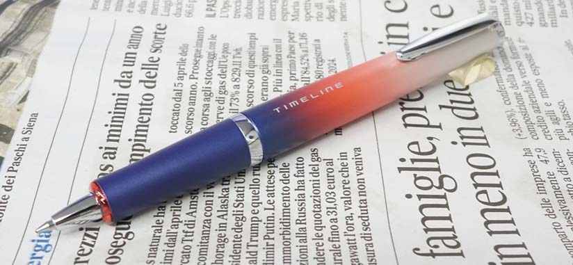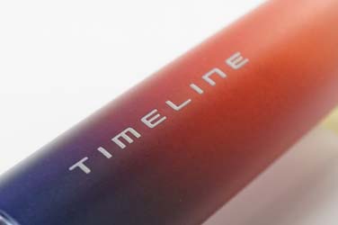 送料・名入れ料金は別途費用を要する場合がございます。 詳しくはアイコンをクリックしてご確認ください。 「タイムライン」シリーズは、2025年に発売20周年を迎えます。この特別な節目を記念した数量限定モデルが発売。「タイムライン」として初めて3色のグラデーションを採用しました。コンセプトは〈WILL〉「The will to make dreams come true」で、ボディには夢を叶えるための強い意志をネイビーで表現し、その先に見える明るい未来をブラッドオレンジからホワイトへと移り変わるグラデーションで表現しています。専用ケースも20th限定カラーとなっています。 「タイムライン」は、2005年より発売する、過去・現在・未来・永遠という時間軸をテーマにした独創的な形状の油性ボールペンです。ペン先の繰り出しには、シリーズの特長である「ダブルアクション繰り出し式」を採用しています。本体ボディを回すことで、口金とペン先部分を2段階で出し入れできます。本体ボディを回すと口金部分が繰り出され、さらにもう1段階回すとペン先が現れて筆記可能になります。携帯時には口金まで収納されるので、ペン全体の長さはコンパクトになり、デザイン性と携帯性を両立しました。 インキには、なめらかで濃い筆跡と書き出しの良さが特長の油性インキ「アクロインキ」を採用しています。(2025年10月掲載)